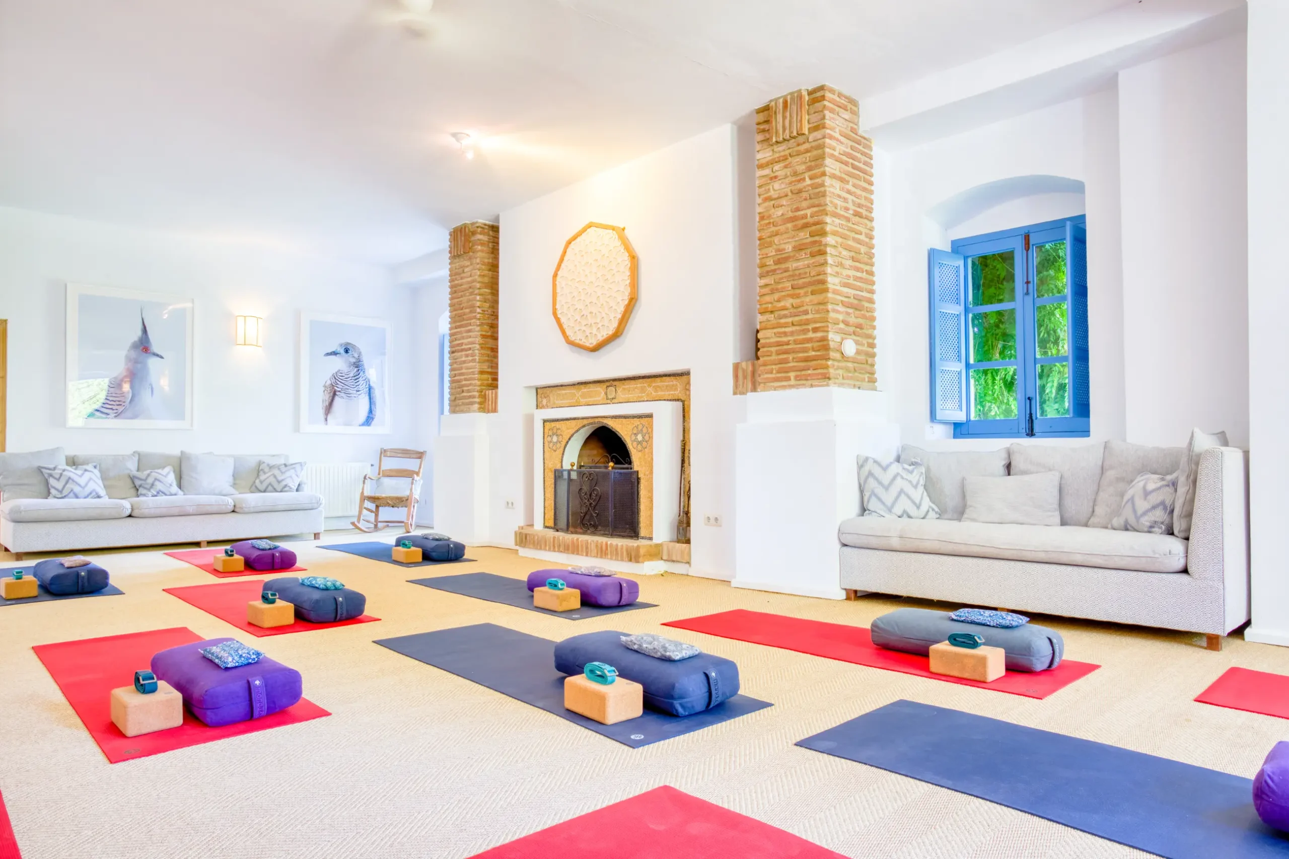 Umgeben von Palmen und duftenden Pinien-Bäumen praktizieren wir die Morgenroutine outdoor am Infinity-Pool mit atemberaubender Aussicht über die hügelige Landschaft von Andalusien oder im geräumigen Yoga-Raum. Der rustikale Luxus, das nachhaltige Ethos und die beruhigende Energie der Luxus-Finca bieten dir den idealen Raum, um Kraft zu tanken und dich ganz deiner Yoga- und Meditations-Praxis hinzugeben.